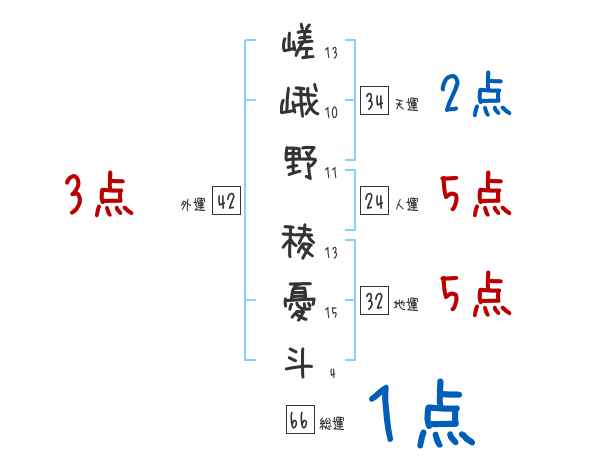 嵯峨野稜憂斗さんの画数の鑑定結果
