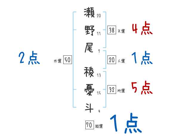 瀬野尾稜憂斗さんの画数の鑑定結果