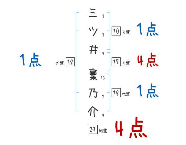 三ツ井稟乃介さんの画数の鑑定結果