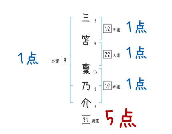 天運![]() | 三笘稟乃介さんの天運は12画の1つ星!簡単な失敗で諦めてしまいやすいかも。着実に行動すると良いでしょう。 家系が持つ宿命的な運勢を表します。祖先から受け継いだ苗字ですので自分の力が及びません。家柄を象徴します。 |