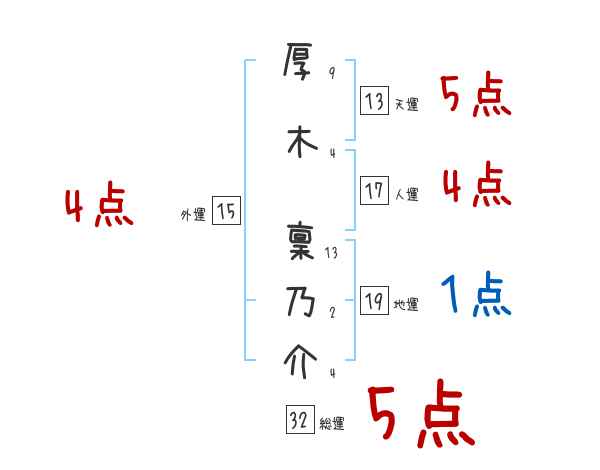 厚木稟乃介さんの画数の鑑定結果