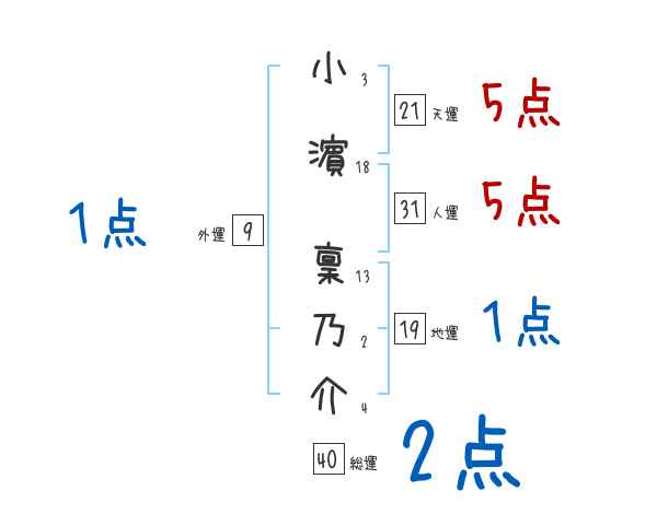 小濵稟乃介さんの画数の鑑定結果