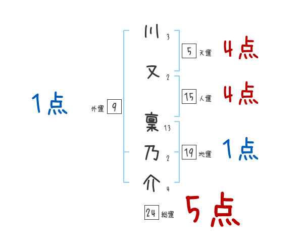 川又稟乃介さんの画数の鑑定結果