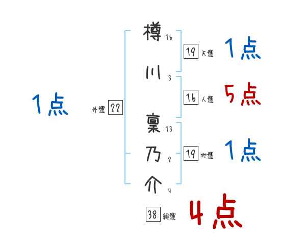 人運![]() | 樽川稟乃介さんの人運は16画の5つ星!人望が厚く大きく発展する。逆転成功が見える。 性格や才能などを表す2番目に重要な運勢です。人間関係や協調性、社会的な成功に影響します。主に20歳から50歳ぐらいまでの中年期の運勢を表します。 |