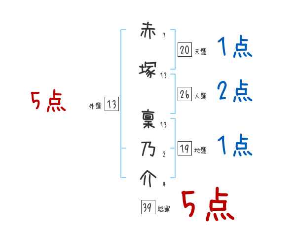 赤塚稟乃介さんの外運は13画の5つ星