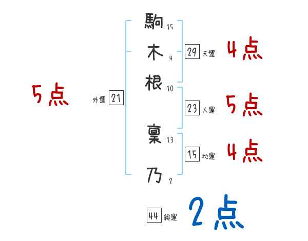 外運![]() | 駒木根稟乃さんの外運は21画の5つ星!統率力がある。独立し成功する。名誉を手に入れる。 生活面を象徴する運勢です。外部から受ける影響力を表し、結婚運、家庭運や職場、環境への順応性を表します。 |