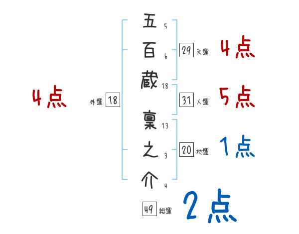 総運![]() | 五百蔵稟之介さんの総運は49画の2つ星!不安定な性格で明暗がある人生。周りの人には支援されやすい。 あなたの人生を表す1番重要な運勢です。生涯を通じて影響する総合運となり、主に50歳以降の晩年期に影響を及ぼします。 |