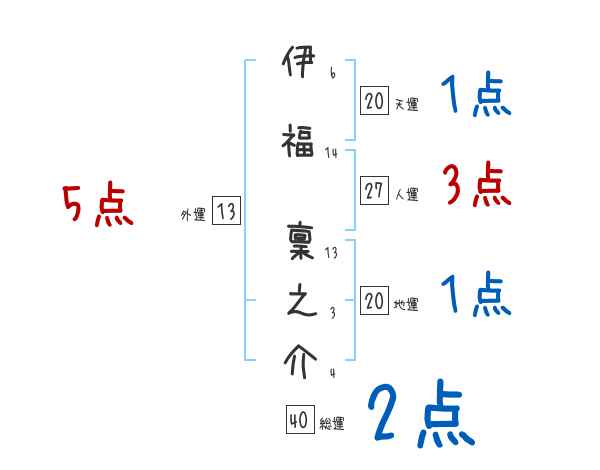 外運![]() | 伊福稟之介さんの外運は13画の5つ星!才能に恵まれ人気がある。名声を手に入れる。円満な人生。 生活面を象徴する運勢です。外部から受ける影響力を表し、結婚運、家庭運や職場、環境への順応性を表します。 |