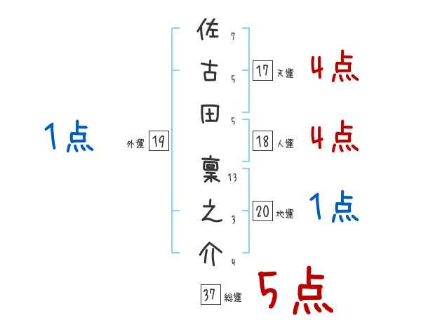 総運![]() | 佐古田稟之介さんの総運は37画の5つ星!努力家で順応性に優れる。現実的な考え方ができ忠実に物事をこなす。 あなたの人生を表す1番重要な運勢です。生涯を通じて影響する総合運となり、主に50歳以降の晩年期に影響を及ぼします。 |
