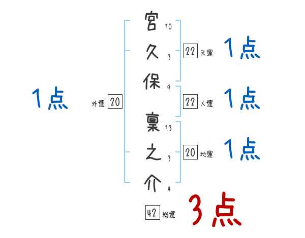 総運![]() | 宮久保稟之介さんの総運は42画の3つ星!病気に注意。多芸であるが消極的でおとなしい。 あなたの人生を表す1番重要な運勢です。生涯を通じて影響する総合運となり、主に50歳以降の晩年期に影響を及ぼします。 |