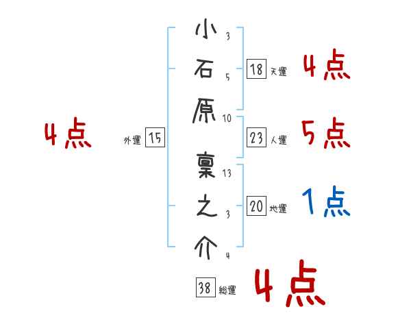 小石原稟之介さんの画数の鑑定結果