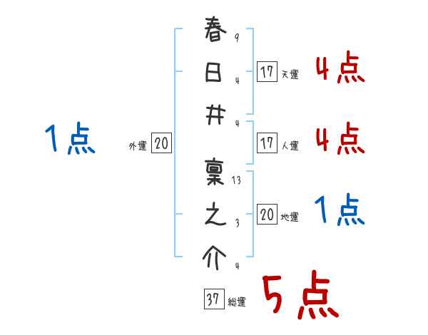 総運![]() | 春日井稟之介さんの総運は37画の5つ星!努力家で順応性に優れる。現実的な考え方ができ忠実に物事をこなす。 あなたの人生を表す1番重要な運勢です。生涯を通じて影響する総合運となり、主に50歳以降の晩年期に影響を及ぼします。 |