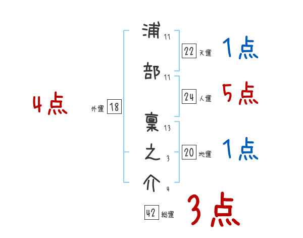 浦部稟之介さんの画数の鑑定結果
