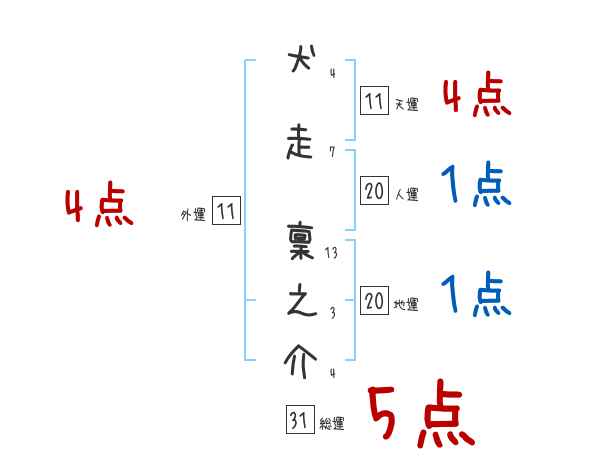 犬走稟之介さんの画数の鑑定結果
