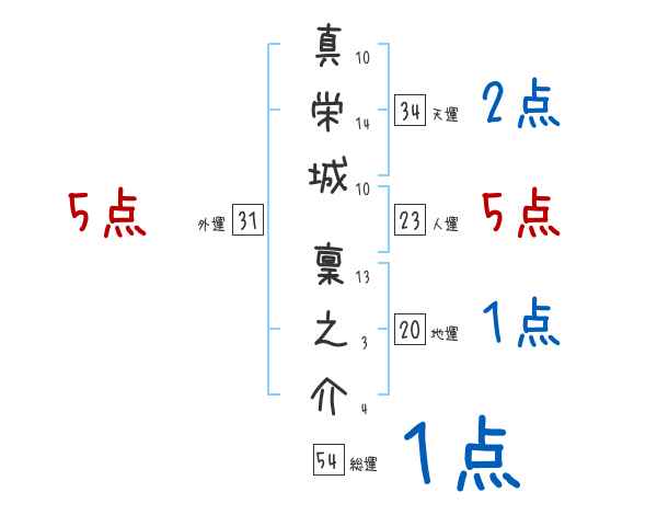天運![]() | 真栄城稟之介さんの天運は34画の2つ星!独創性に優れるが、自尊心が強く災難に注意しましょう。 家系が持つ宿命的な運勢を表します。祖先から受け継いだ苗字ですので自分の力が及びません。家柄を象徴します。 |