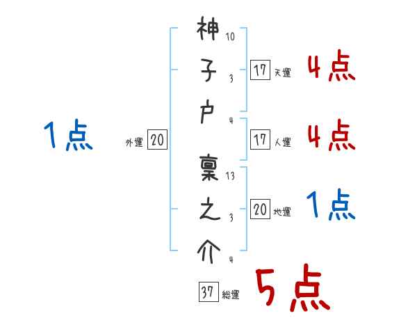 神子戸稟之介さんの画数の鑑定結果