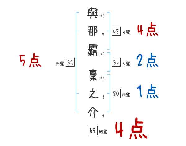 與那覇稟之介さんの画数の鑑定結果