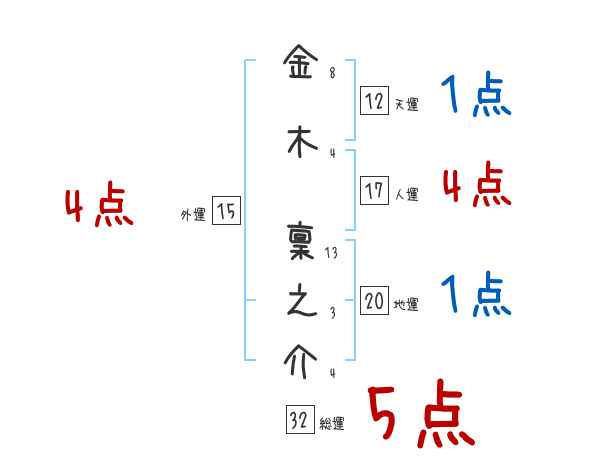 総運![]() | 金木稟之介さんの総運は32画の5つ星!柔軟性があり成功する。チャンスが多く金運が良い。 あなたの人生を表す1番重要な運勢です。生涯を通じて影響する総合運となり、主に50歳以降の晩年期に影響を及ぼします。 |
