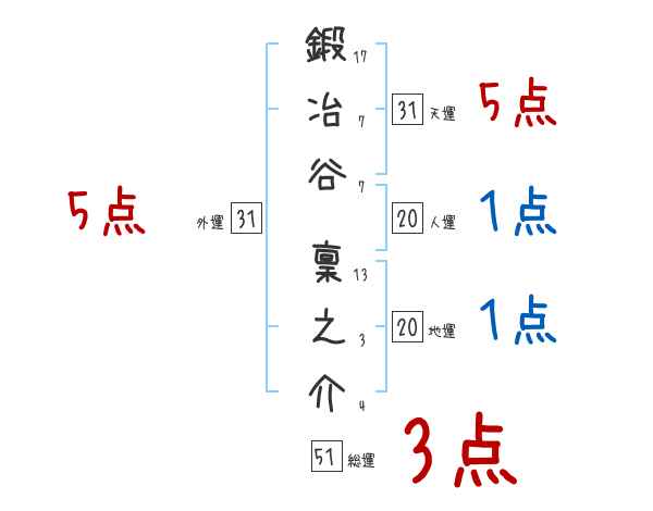 鍛冶谷稟之介さんの画数の鑑定結果