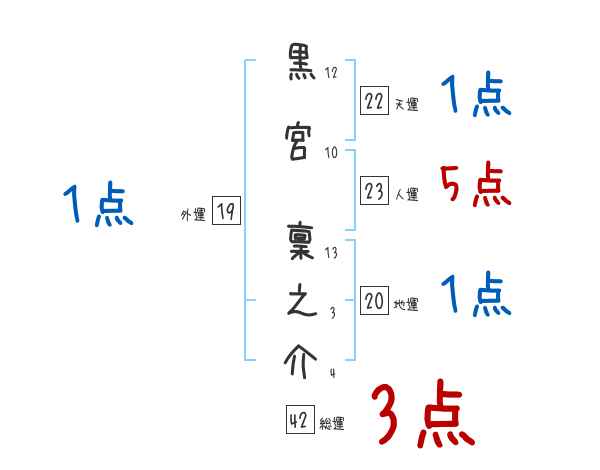 黒宮稟之介さんの画数の鑑定結果