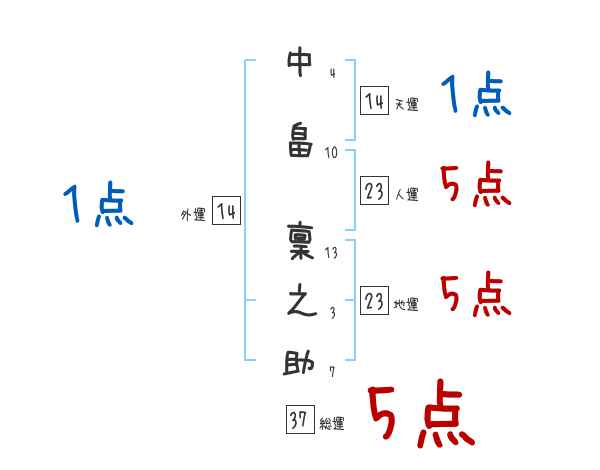 総運![]() | 中畠稟之助さんの総運は37画の5つ星!努力家で順応性に優れる。現実的な考え方ができ忠実に物事をこなす。 あなたの人生を表す1番重要な運勢です。生涯を通じて影響する総合運となり、主に50歳以降の晩年期に影響を及ぼします。 |