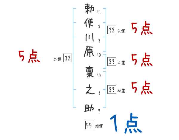 外運![]() | 勅使川原稟之助さんの外運は32画の5つ星!柔軟性があり成功する。チャンスが多く金運が良い。 生活面を象徴する運勢です。外部から受ける影響力を表し、結婚運、家庭運や職場、環境への順応性を表します。 |