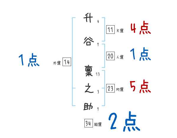 天運![]() | 升谷稟之助さんの天運は11画の4つ星!着実に富や地位を得る幸運な人生。 家系が持つ宿命的な運勢を表します。祖先から受け継いだ苗字ですので自分の力が及びません。家柄を象徴します。 |