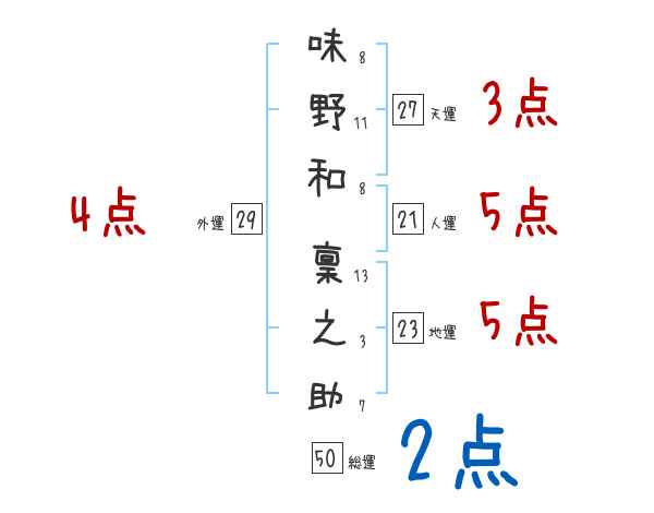 味野和稟之助さんの画数の鑑定結果