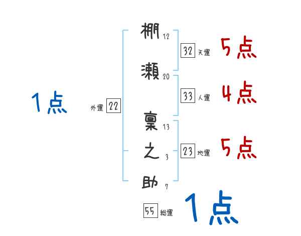 天運![]() | 棚瀬稟之助さんの天運は32画の5つ星!柔軟性があり成功する。チャンスが多く金運が良い。 家系が持つ宿命的な運勢を表します。祖先から受け継いだ苗字ですので自分の力が及びません。家柄を象徴します。 |