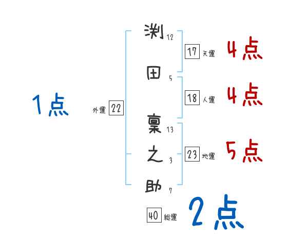 外運![]() | 渕田稟之助さんの外運は22画の1つ星!努力することが苦手ないっぽう手先が器用。芸術性にも優れる。 生活面を象徴する運勢です。外部から受ける影響力を表し、結婚運、家庭運や職場、環境への順応性を表します。 |