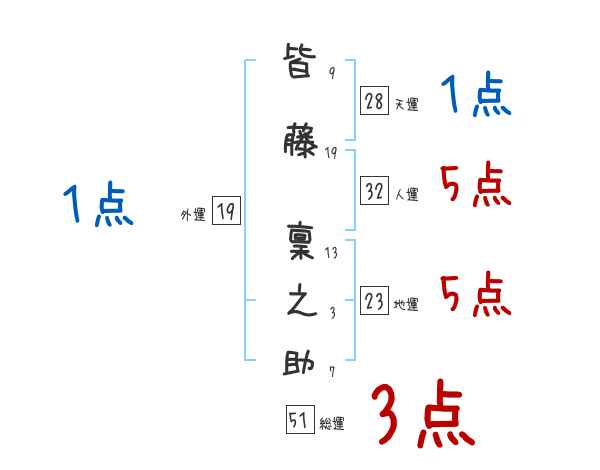皆藤稟之助さんの画数の鑑定結果