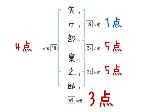 矢ヶ部稟之助さんの画数の鑑定結果