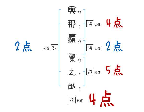 與那覇稟之助さんの画数の鑑定結果