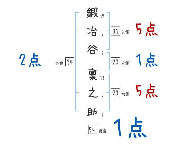 鍛冶谷稟之助さんの画数の鑑定結果