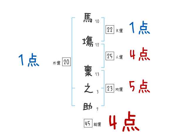 天運![]() | 馬塲稟之助さんの天運は22画の1つ星!努力することが苦手ないっぽう手先が器用。芸術性にも優れる。 家系が持つ宿命的な運勢を表します。祖先から受け継いだ苗字ですので自分の力が及びません。家柄を象徴します。 |
