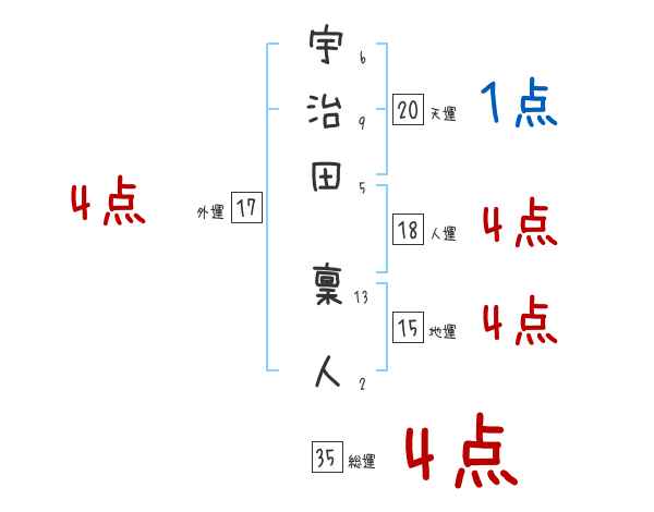 宇治田稟人さんの画数の鑑定結果