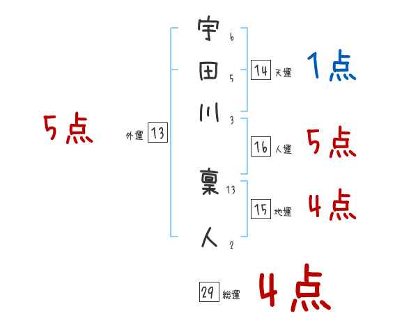宇田川稟人さんの画数の鑑定結果