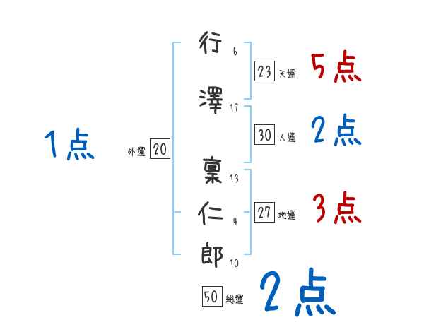 行澤稟仁郎さんの画数の鑑定結果