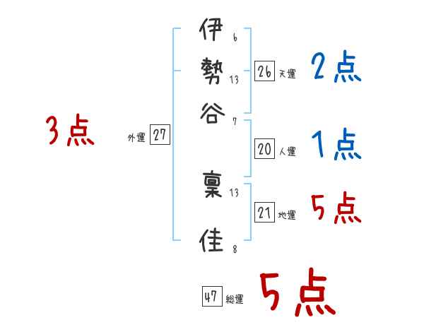 総運![]() | 伊勢谷稟佳さんの総運は47画の5つ星!実力が開花し発展する円満な人生。財に恵まれる。 あなたの人生を表す1番重要な運勢です。生涯を通じて影響する総合運となり、主に50歳以降の晩年期に影響を及ぼします。 |
