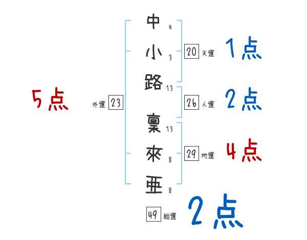 中小路稟來亜さんの画数の鑑定結果