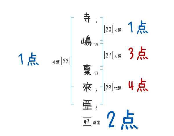 寺嶋稟來亜さんの画数の鑑定結果
