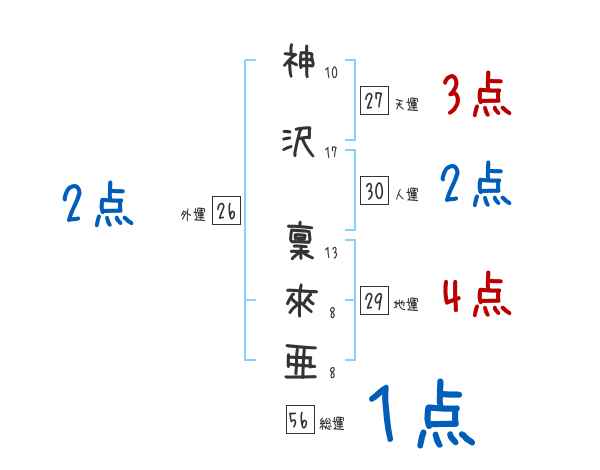 神沢稟來亜さんの画数の鑑定結果