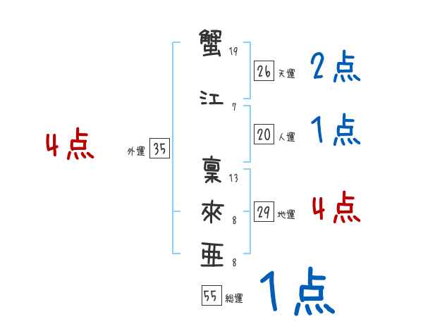 蟹江稟來亜さんの画数の鑑定結果