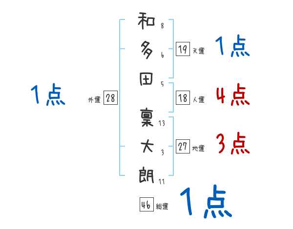 和多田稟大朗さんの画数の鑑定結果