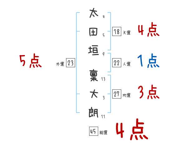 太田垣稟大朗さんの画数の鑑定結果