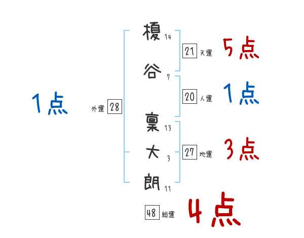 天運![]() | 榎谷稟大朗さんの天運は21画の5つ星!統率力がある。独立し成功する。名誉を手に入れる。 家系が持つ宿命的な運勢を表します。祖先から受け継いだ苗字ですので自分の力が及びません。家柄を象徴します。 |