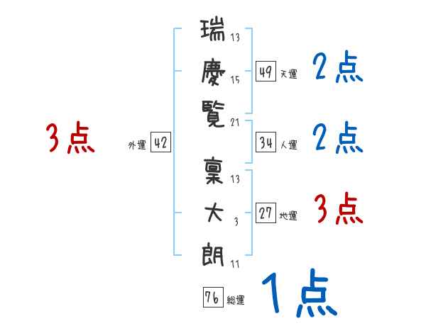 瑞慶覧稟大朗さんの画数の鑑定結果