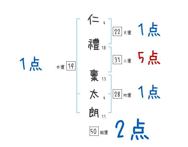 仁禮稟太朗さんの画数の鑑定結果