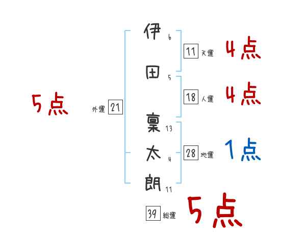 伊田稟太朗さんの画数の鑑定結果