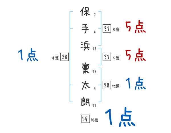 天運![]() | 保手浜稟太朗さんの天運は31画の5つ星!社交性があり判断力に優れる。順風満帆な人生で円満な生活。 家系が持つ宿命的な運勢を表します。祖先から受け継いだ苗字ですので自分の力が及びません。家柄を象徴します。 |